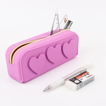 Estuche de lápices de silicona suave al por mayor para la escuela estuche de lápices impermeable amoroso del corazón accesorios escolares bolsa de bolígrafo de silicona bonita